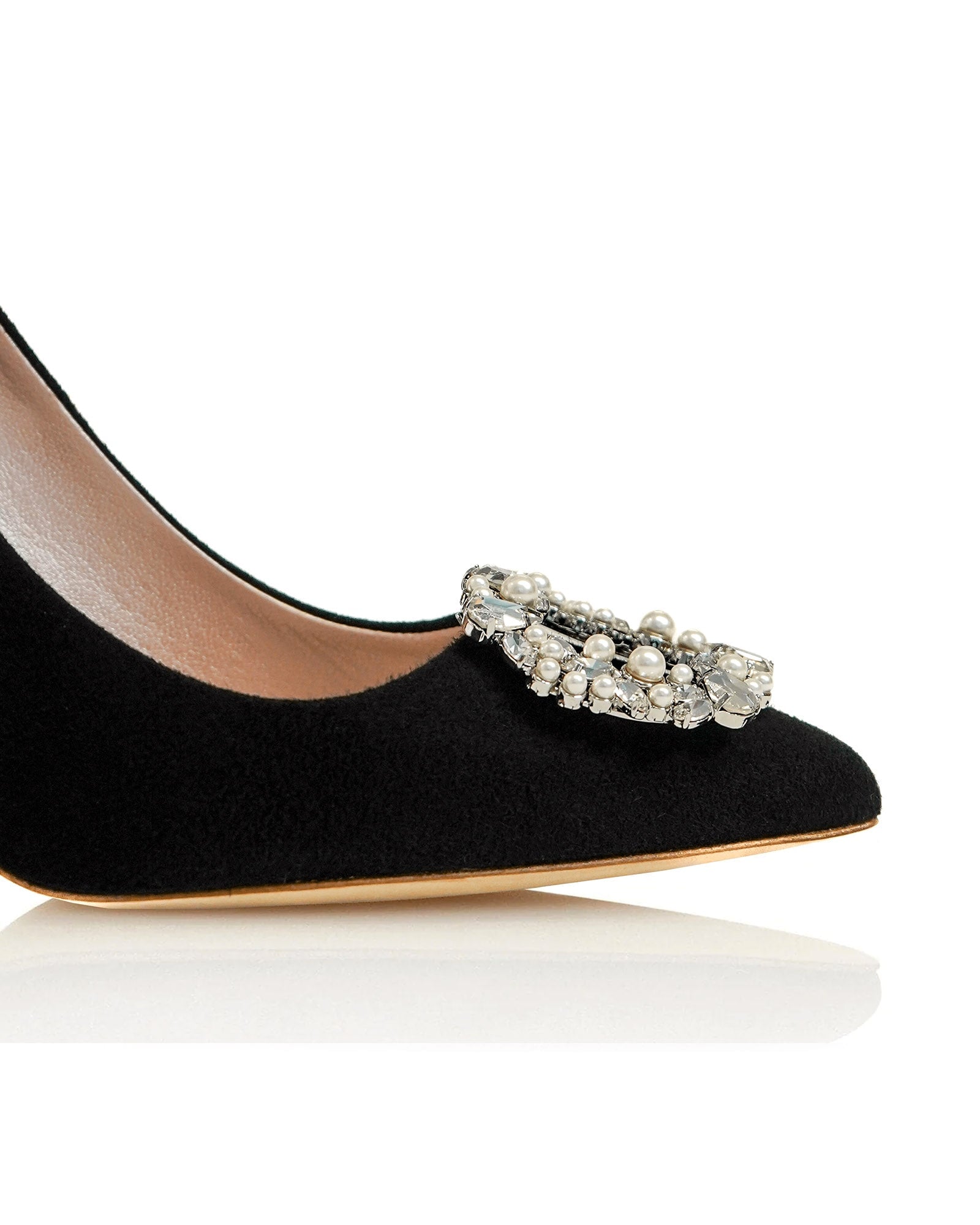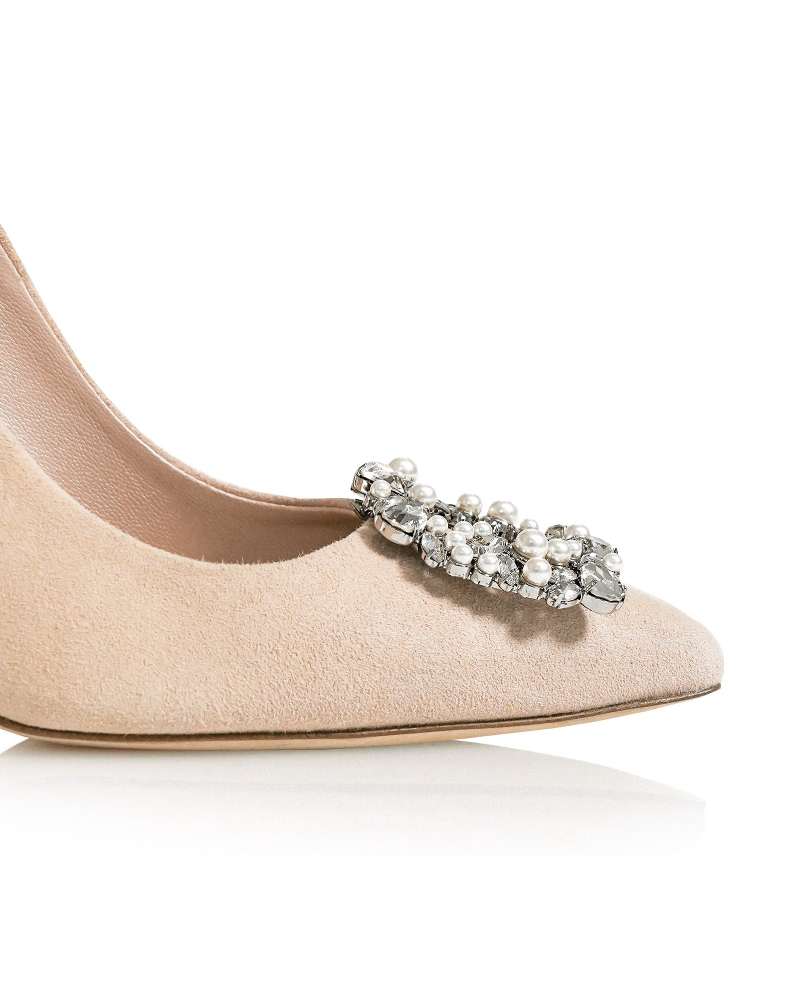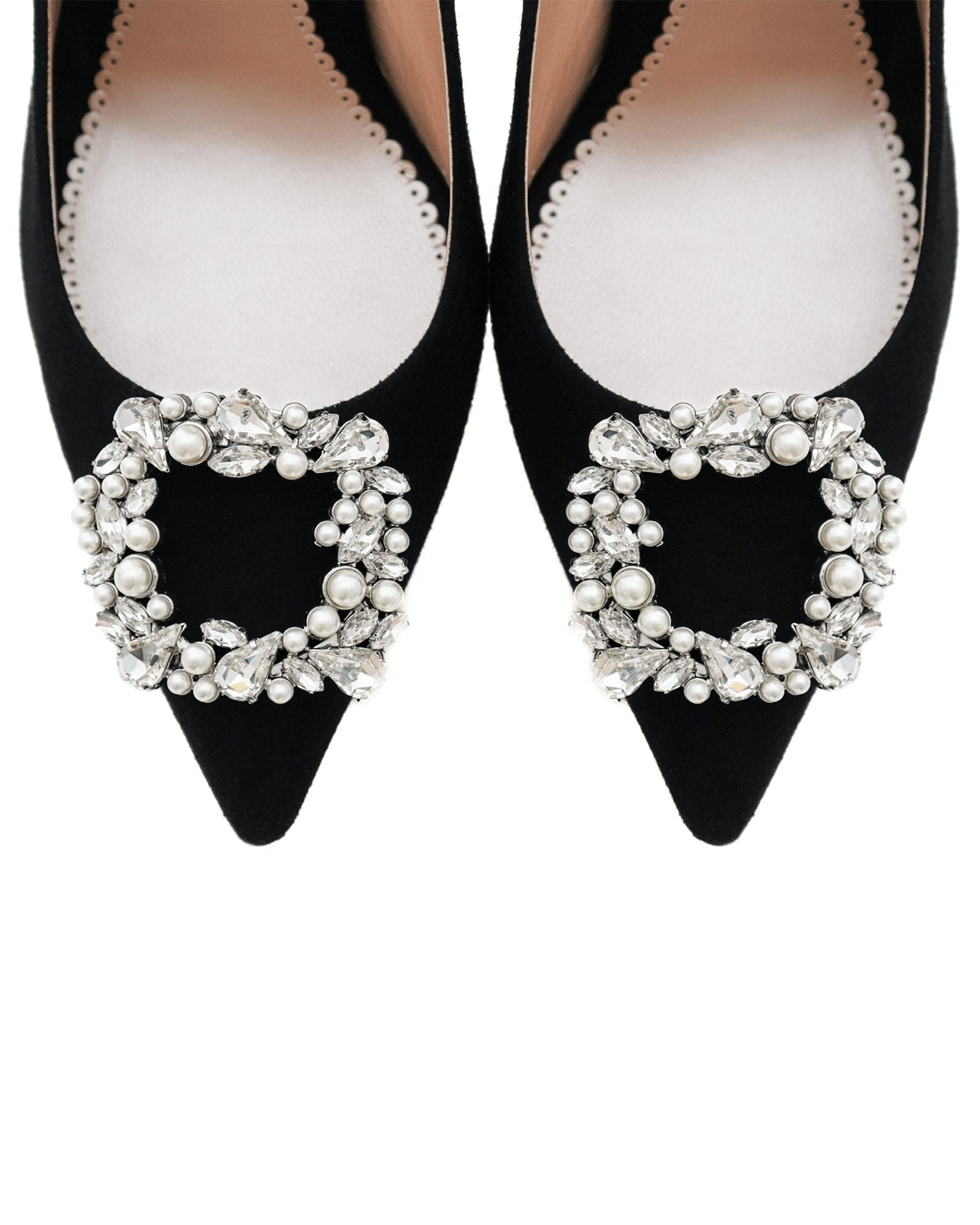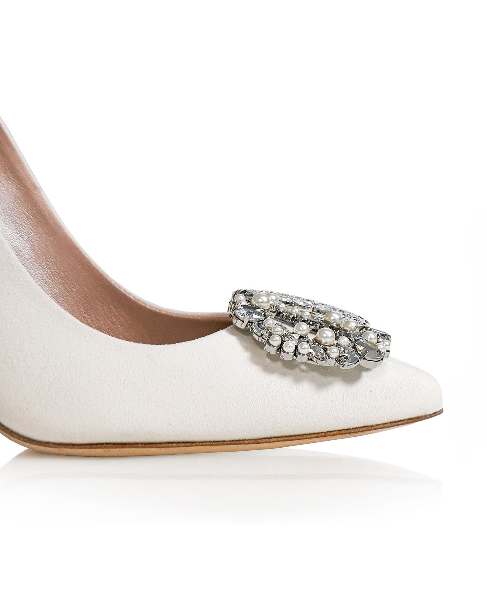 Take your shoes from day to night with beautiful Bejewelled Crystal & Pearl Shoe Clip. They are also perfect for brides who want to change up their look during celebrations. These elegant handmade shoe clips can be clipped onto a pair of our ivory courts after the ceremony, ready for the reception.