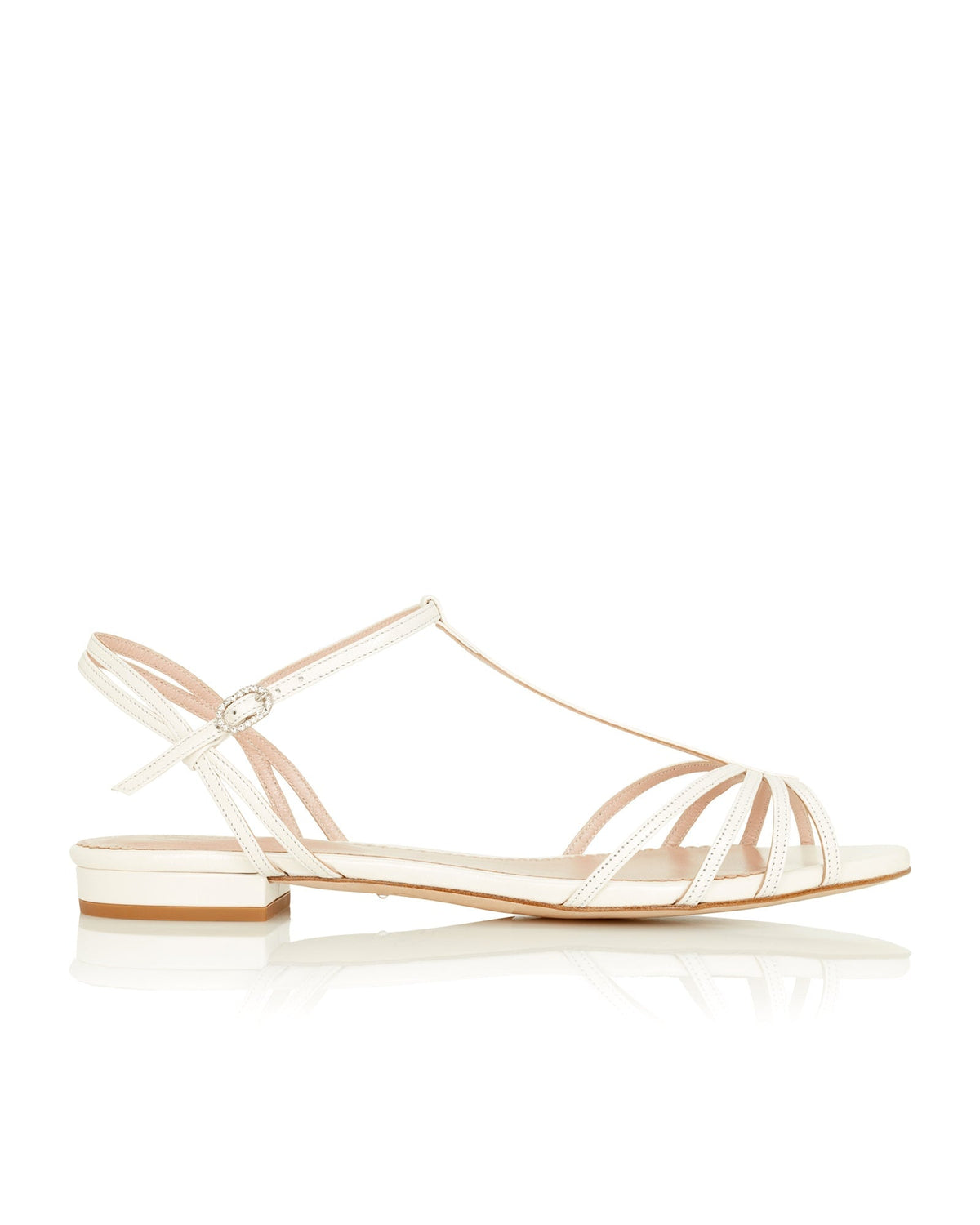 May Ivory Leather Flat Sandal