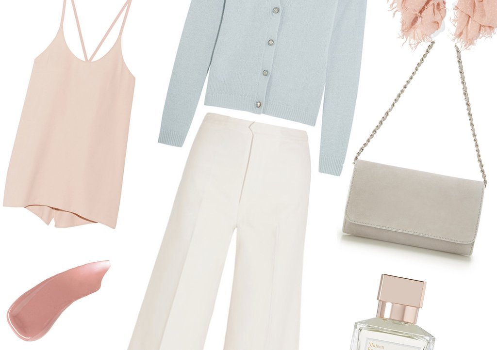 Above we have our beautiful Natasha Clutch and Poppy Shoes in the sublime Vapour Grey shade. This versatile colour is a great option for summer, we've teamed our shoes and bag with a gorgoues array of neutral pastel shades including this cute cardigan from Miu Miu over a blush cami finished with structural trousers by Isabel Marant.