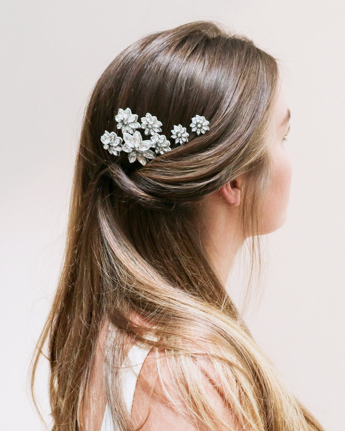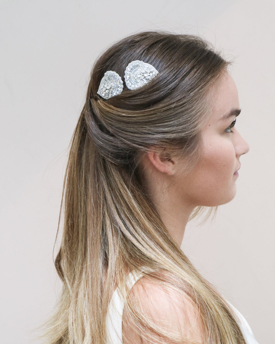 Discover hand-beaded, super-lightweight, and effortlessly stylish bridal hair accessories. The Emmy London hair decoration collection features a diverse array of bridal styles inspired by flowers, architecture, and the romantic Art Deco era. These sensational hand-beaded hair adornments not only add a touch of sparkle but also look incredible when adorning your hair on your wedding day. Elevate your bridal look with the perfect blend of craftsmanship and inspiration. Explore our collection to find the ideal hair accessories that beautifully complement your style and add a touch of glamour to your special day.