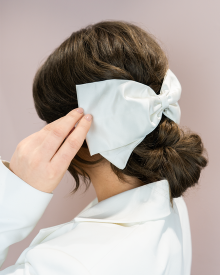 Wonderfully light and comfortable to wear all day, the bow looks great worn on the side of the head, added to a ponytail, or with a relaxed hairstyle.