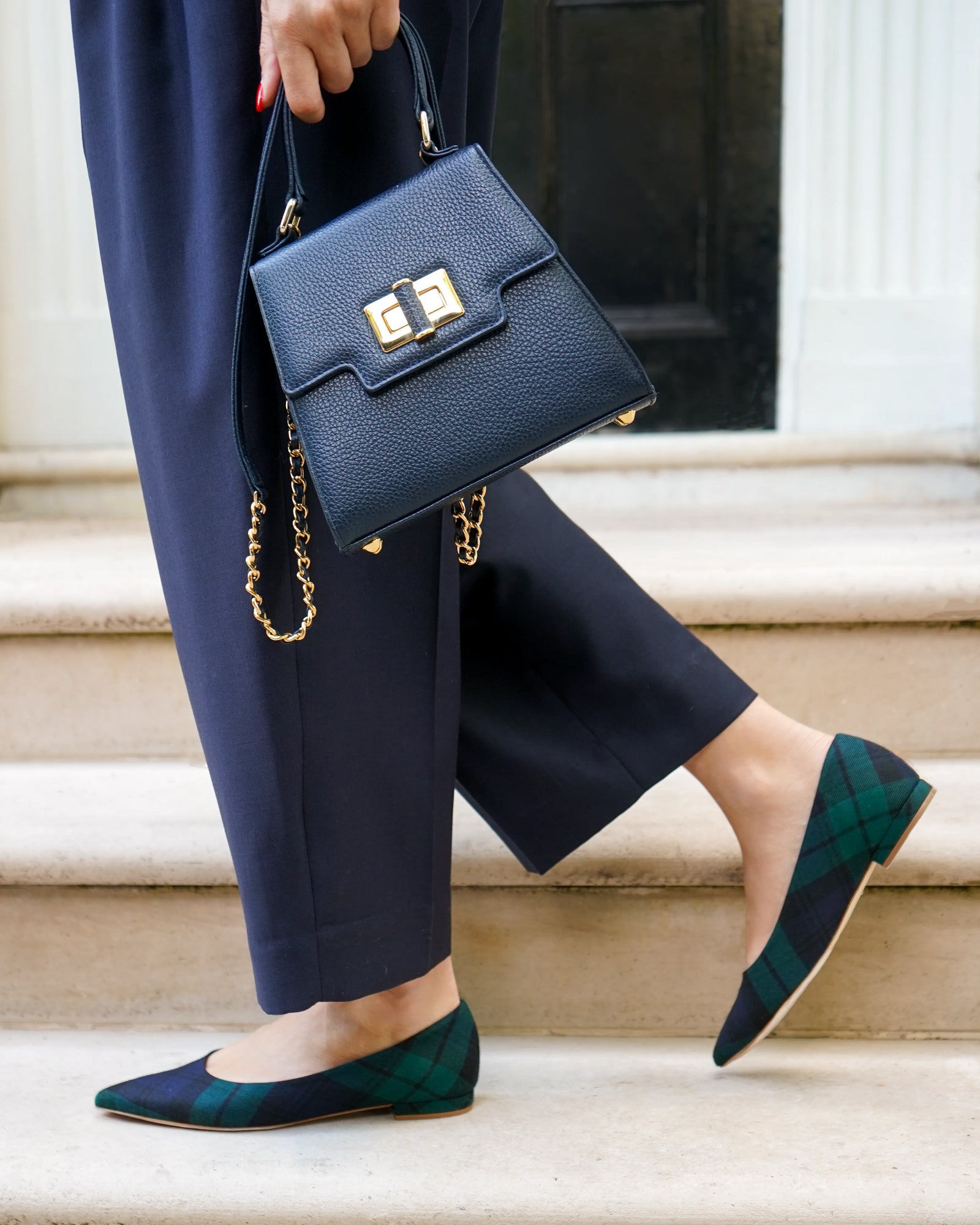 Featuring a chic pointed toe and a flattering low flat heel, the Lulu Black Watch combines effortless sophistication with all-day comfort. Lined with buttery-soft leather and finished with a nubuck sole, each pair includes our signature Emmy London comfort padding, carefully designed to support you from day to night.