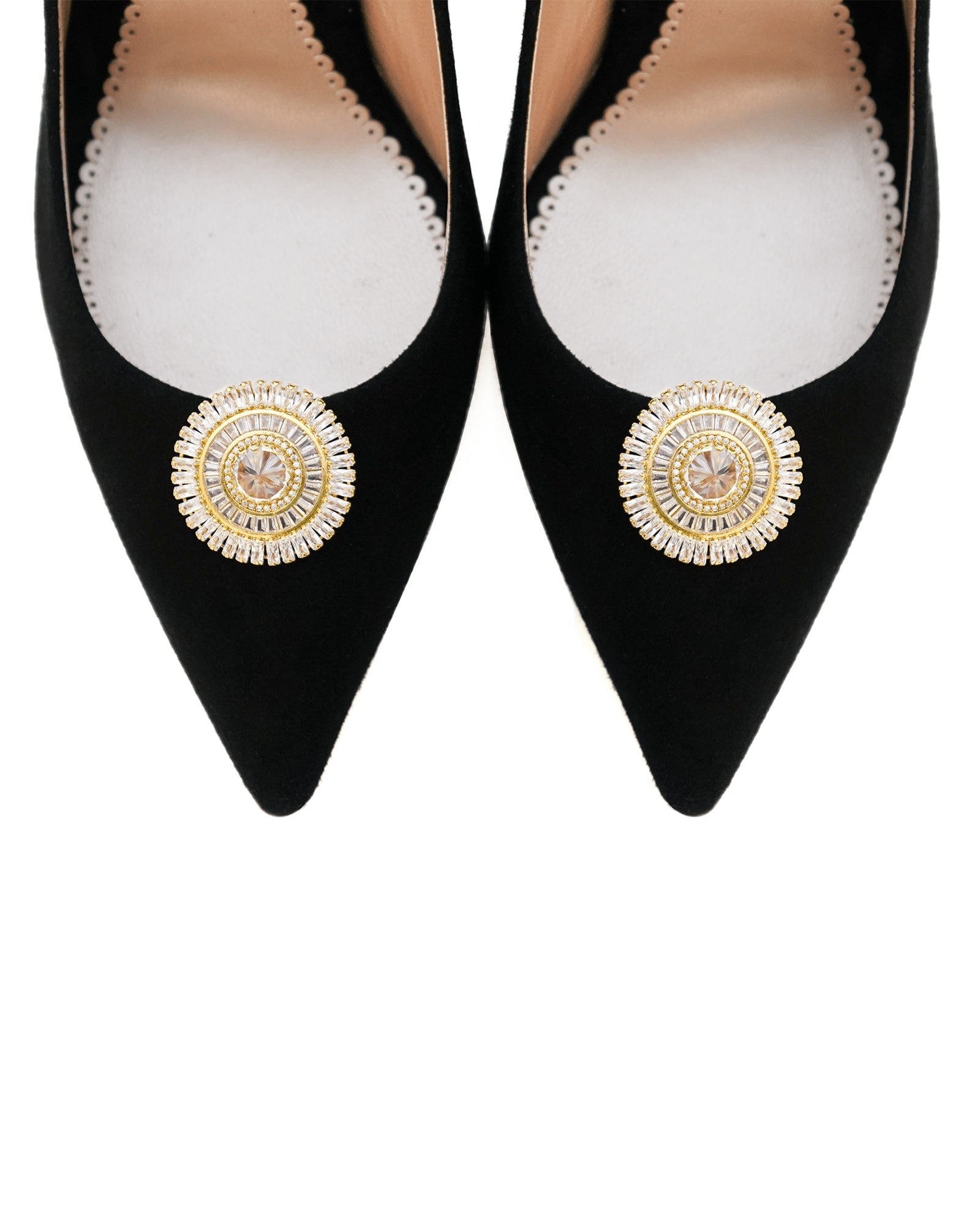 Introducing the Radiance Gold Crystal shoe clip to our accessory collection. These elegant and versatile shoe clips are designed to make you shine in any outfit.