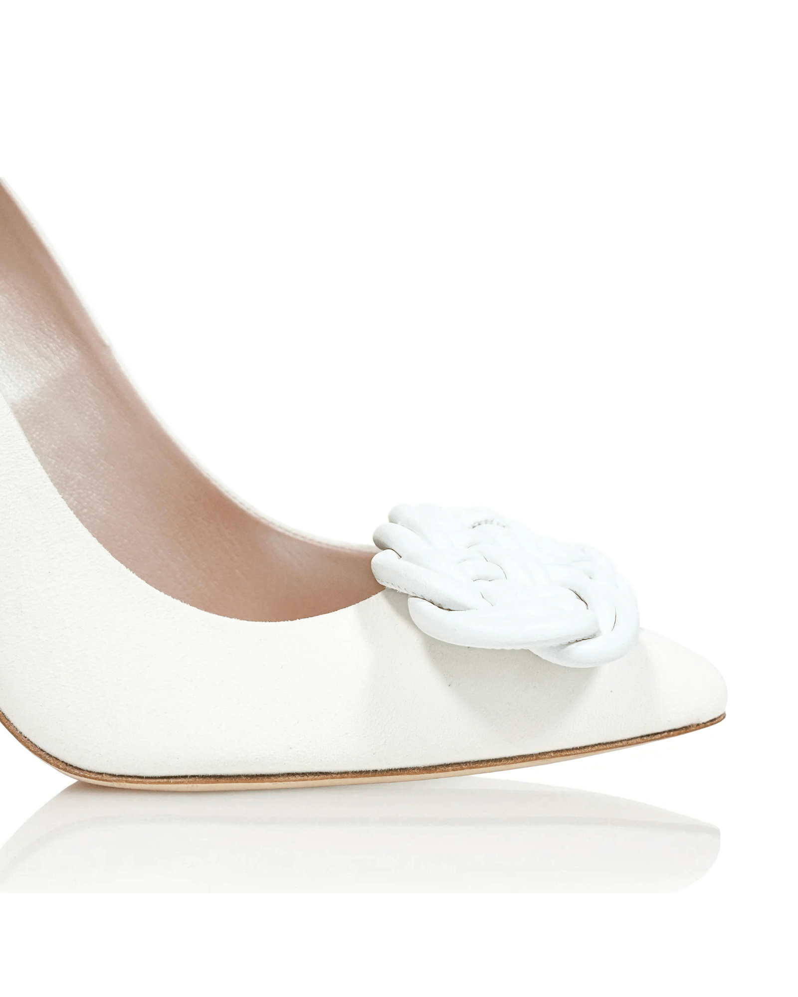 Panama shoe clips are woven from the softest ivory leather. Perfect for the modern bride who wants to change her style throughout the day. Effortlessly attach these statement clips to a pair of Emmy London classic courts.