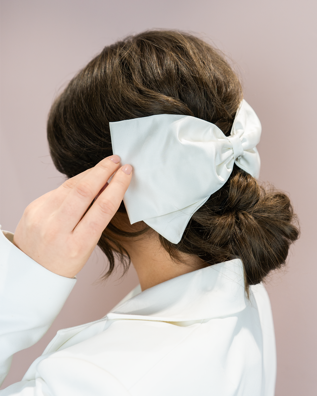Wonderfully light and comfortable to wear all day, the bow looks great worn on the side of the head, added to a ponytail, or with a relaxed hairstyle.