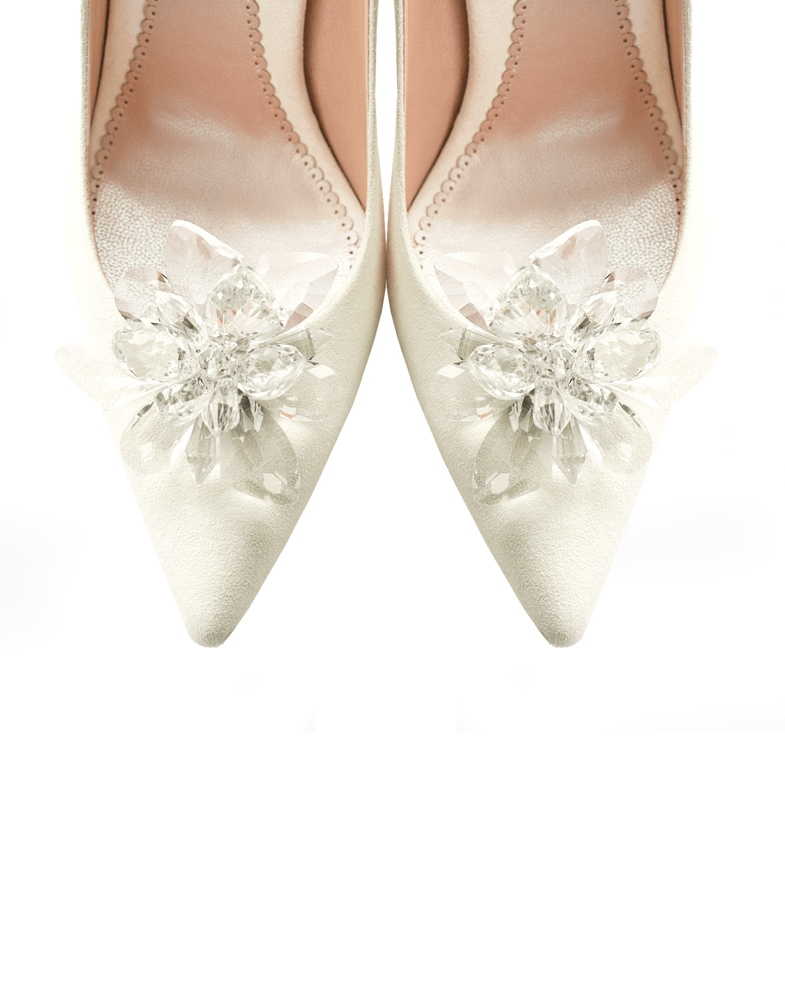 Introducing these beautiful diamond flower shoe clips, the perfect addition to your 'shoedrobe'. Clip them onto any of your favourite Emmy London courts for a shimmer of sparkle.