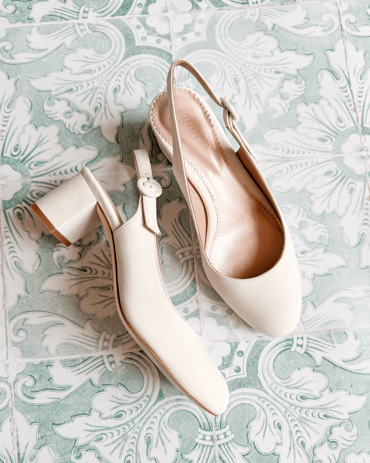 Timeless elegance meets all-day comfort in our Katie slingback. Crafted in soft ivory suede, this classic round-toe style features a chic low block heel—perfect for walking down the aisle and dancing the night away.